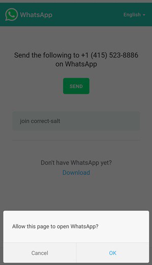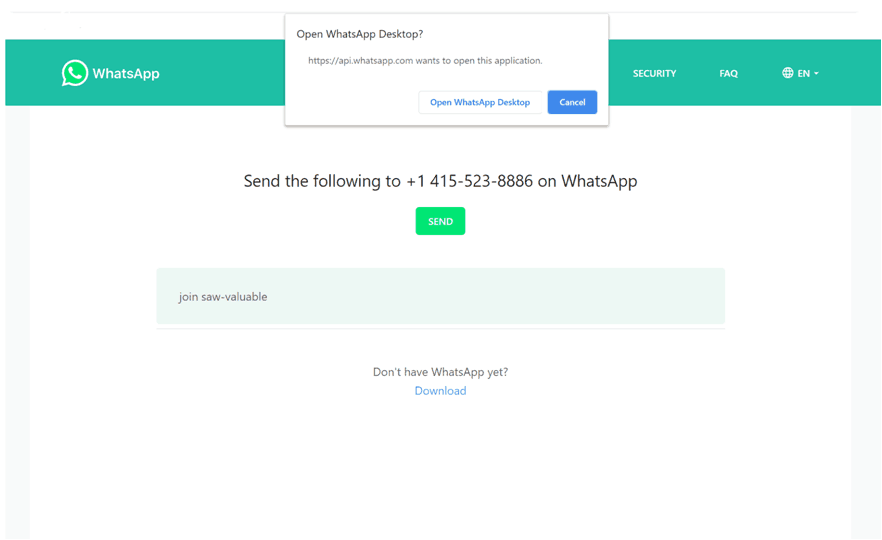 6. Type the text as mentioned on Web Page and send it to the number as mentioned from Whatsapp